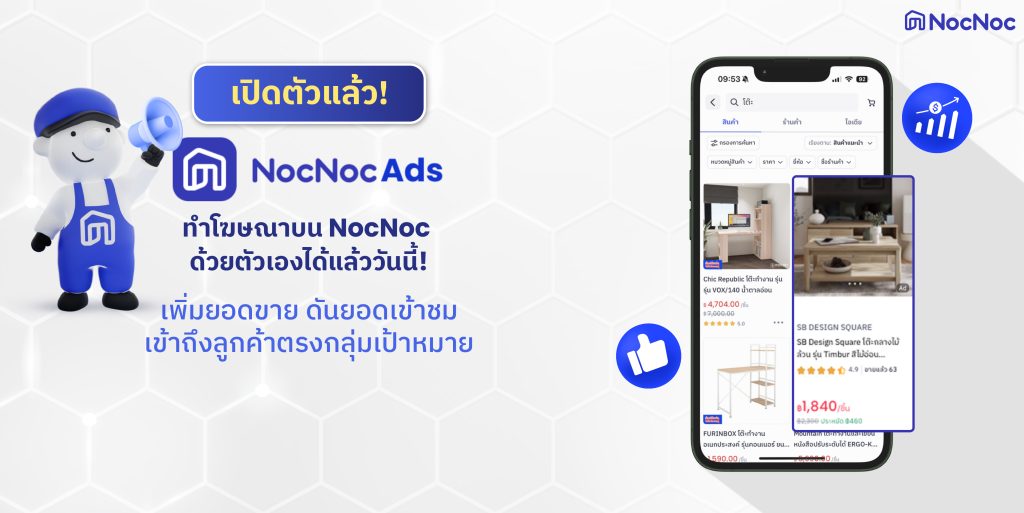 NocNoc Ads ตัวช่วยใหม่ล่าสุดที่จะช่วยสร้างโอกาสทางการขาย เพิ่มการมองเห็น ยอดเข้าชมสินค้า ให้กับสินค้าในร้านค้าของคุณ บนแพลตฟอร์ม NocNoc ซึ่งถือเป็นหนึ่งในปัจจัยที่ช่วยเพิ่มยอดขายให้กับสินค้าและร้านค้าของคุณได้